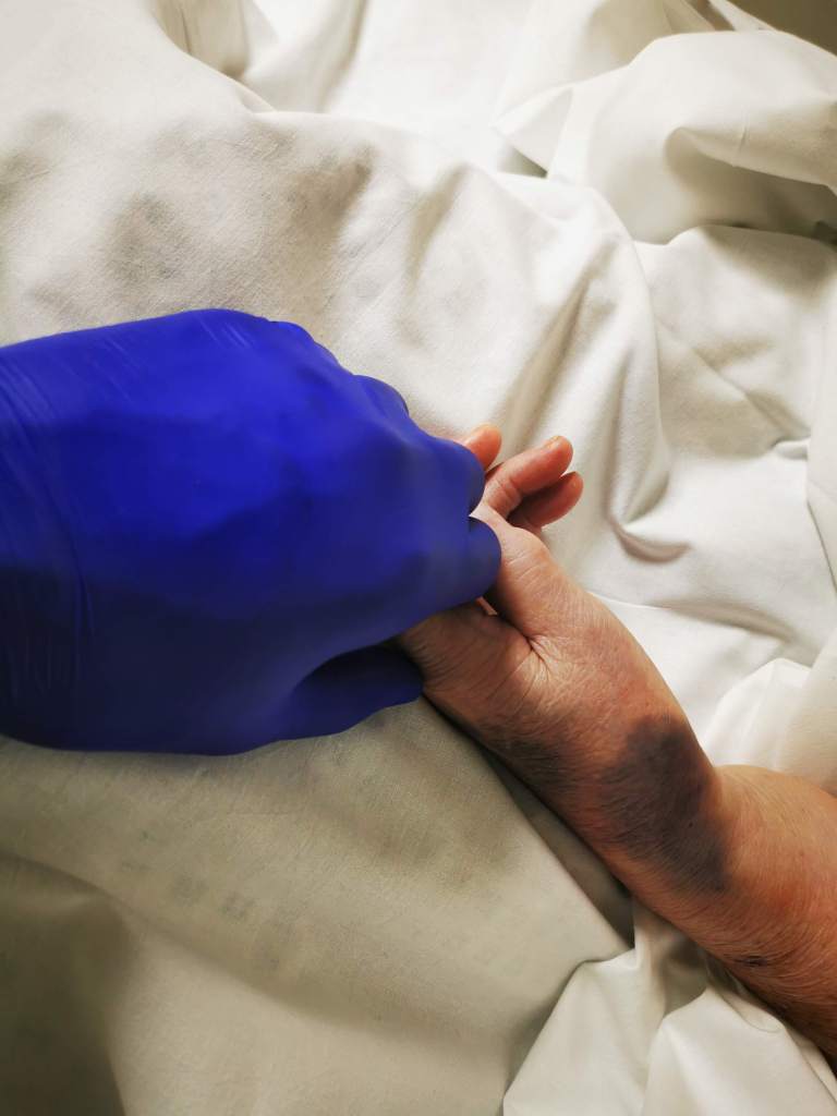 Friday morning and I am sat with her. There is very little response. My mum tells me it’s okay to go as she knows I’ve visited. I can’t bring myself to go. I know there’s not long left. I know that it was my decision to get her into hospital. I know it was my insistence that she’d be better cared for here that got her into this state.