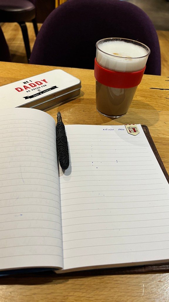 Sat in Costa Coffee at early o’clock in there’s so much that I have to do. I have to prepare for podcast interviews, I have to add entries to my blog, I need to record the audio files as well as record me recording them. That will be with my phone using a new app – a teleprompter. The separate audio file will be on my new Zoom H1N that I treated myself to. Just like this new mini, Kickstarter funded, Lotus 3D printed, laser-etched, limited edition, fountain pen with an Eclat de Saphir Herbin cartouche. I’ve stopped worrying about learning French as Coffee Pot Conversations has taken up my spare time and also injected a much-needed boost of creative positivity back into my bones. Although it suddenly feels like my wrist may have had too much of an injection as it’s already starting to ache and seize up. But that could be a symptom of not writing for too long.
